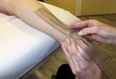 De bewegingsmobiliteit in de voetgewrichten wordt gemeten.